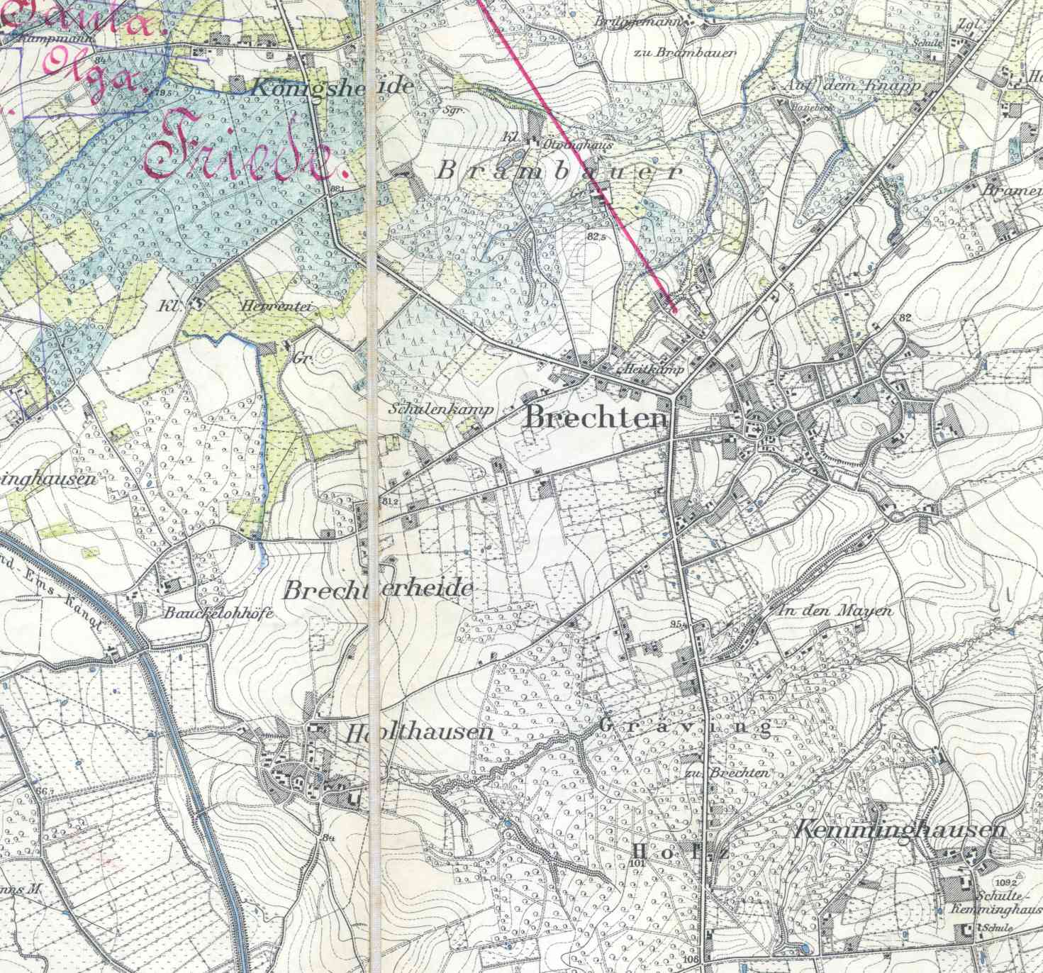1886 auf der Karte ist das Gebiet vom Süggel bis zur Straße