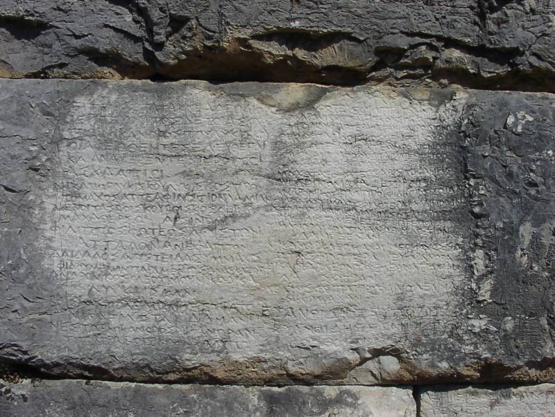 Stein mit den eingravierten Namen von frei gelassenen Sklaven in Butrint - 2007