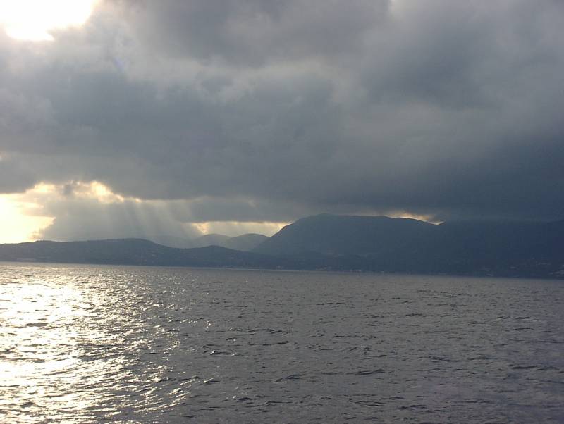 Spätsommer typisch ist. Ein Gewitter zieht auf, umhüllt den Pantokrator