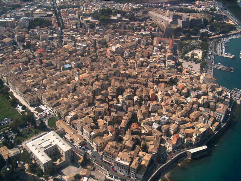 links unten der Palast St. Michael und St. Georg und angrenzend die Esplanade, rechts oben das Neue Fort und der alte Hafen.