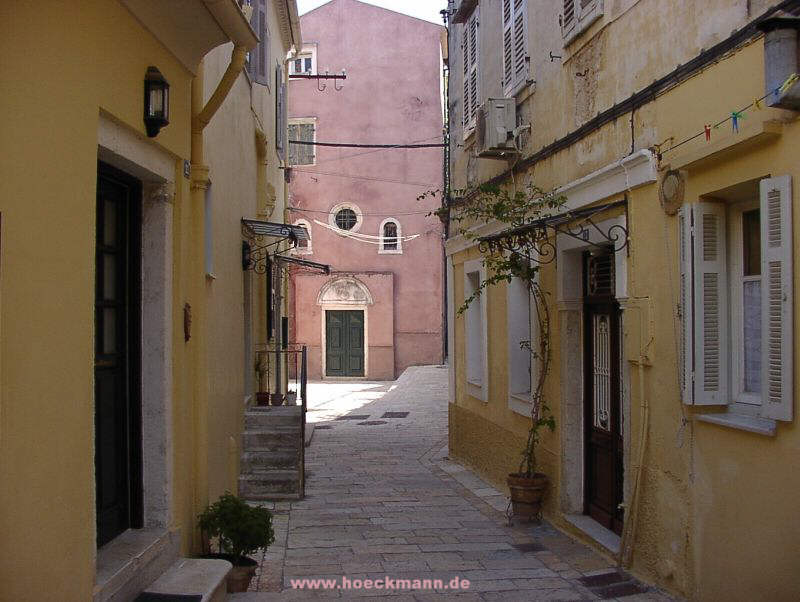 Gasse mit pinkem Haus im Viertel Campielo - 2007