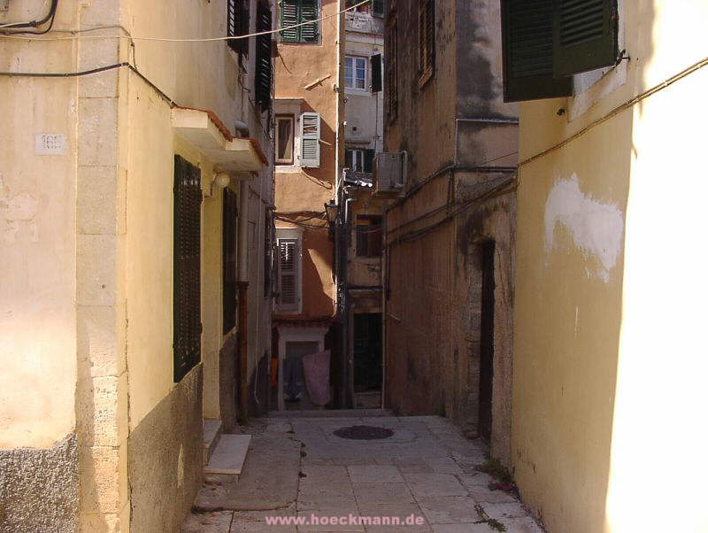 Korfu - dunkle Gasse im Stadtviertel Campiello