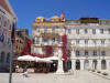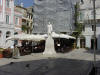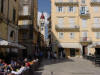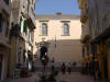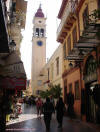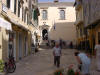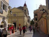 der Nordseite führt eine Verengung des Platzes auf die St. Spiridon-Kirche zu.