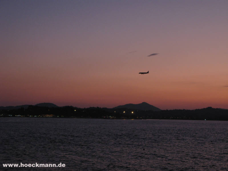 Blick von der Insel Vido auf ein landendes Flugzeug - 2007