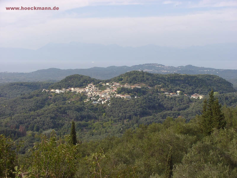 Griechenland Atlas Greece - Korfu bei WikipediaBlick über den Ort Chorepiskopi nach Albanien - 2007