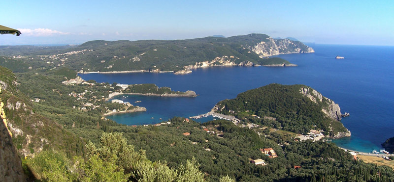 Blick von Lakones auf Palaiokastritsa und die Westküste