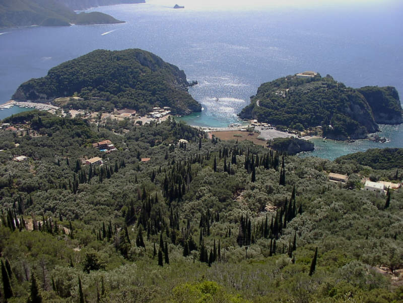 Blick von Lakones auf das Kloster Palaiokastritsa - 2007