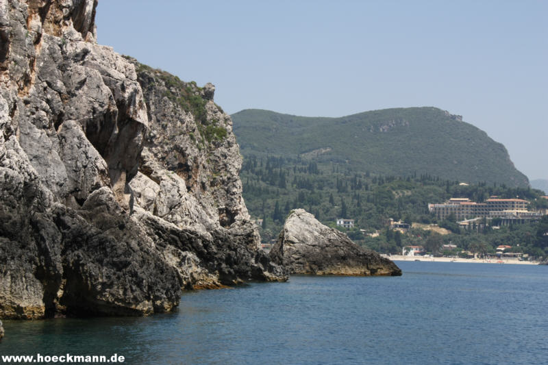 Blick nach Südwesten auf Paleokastritsa Hotel -