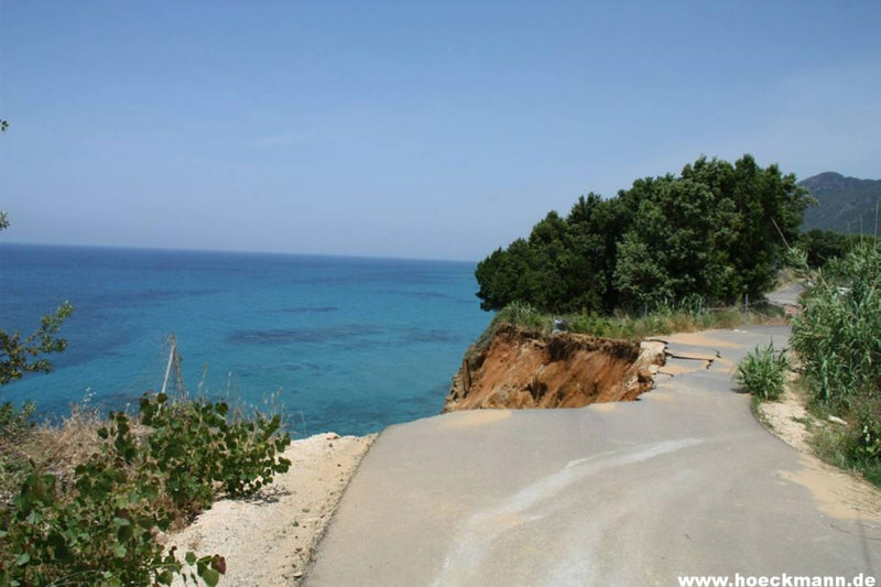 Straßenschaden an der Küstenstraße bei Prasoudi - 2009