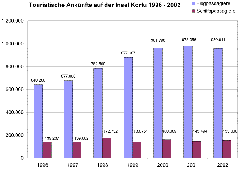 Ankünfte ausländischer Touristen am Hafen Korfu 1996-2002