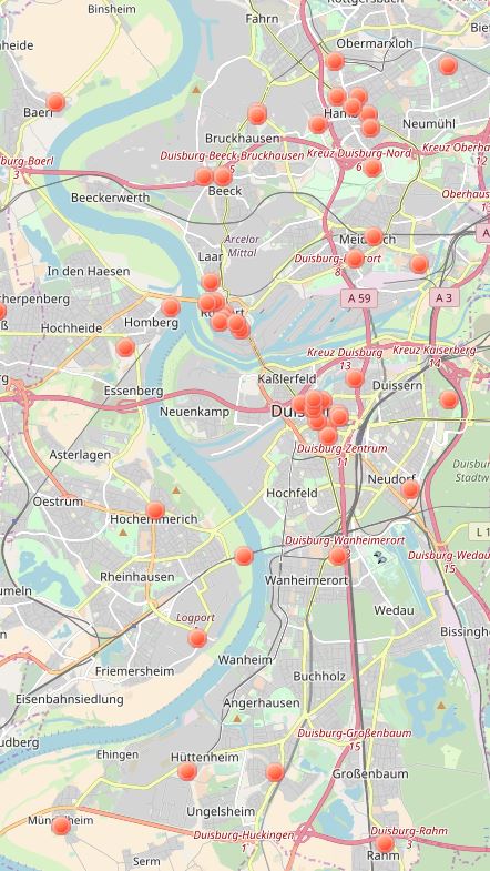 interaktive Karte der Kunstdenkmäler in Duisburg