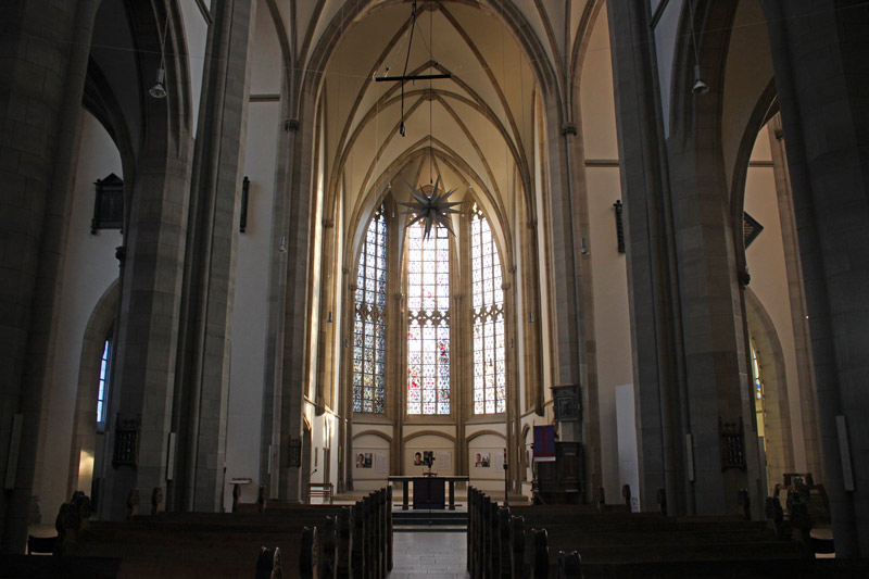 Blick zum Altar der evangelischen Salvatorkirche in Duisburg