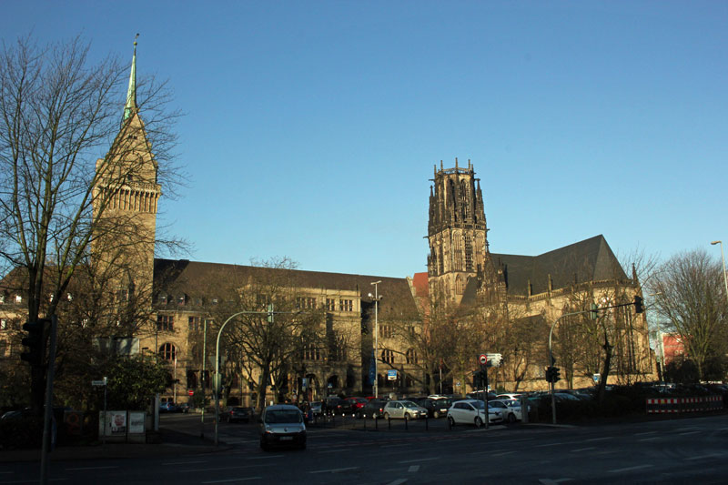 Blick auf Rathaus und Salvatorkirche in Duisburg
