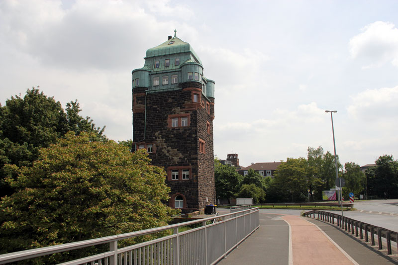 der nördliche Brückenturm der Ruhrort-Homberger Brücke in Duisburg