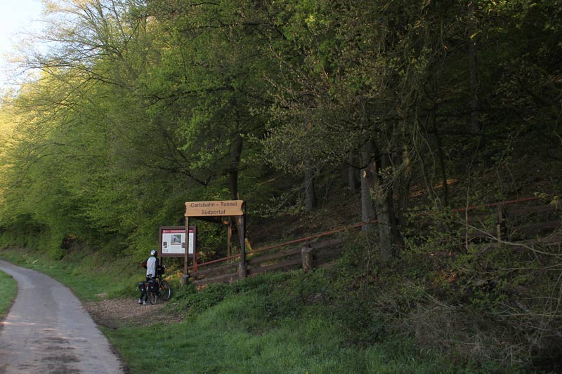Einige Meter Anstieg führen zur ehemaligen Carlsbahn, auf deren Trasse der Radweg nun einige Kilometer verläuft. - Radtour entlang der Diemel im Mai 2015