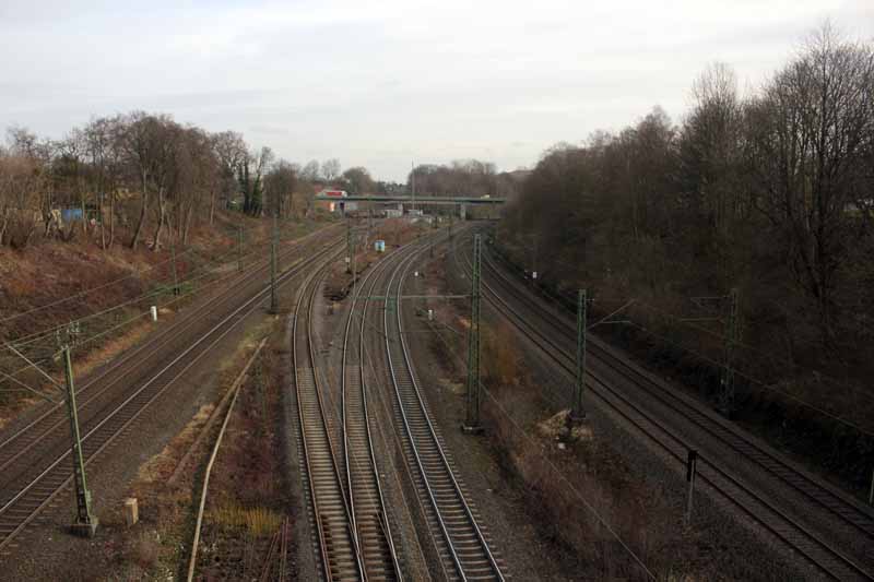 Blick von der Buselohbrücke in Bochum auf die Bahnstrecke Dortmund-Duisburg