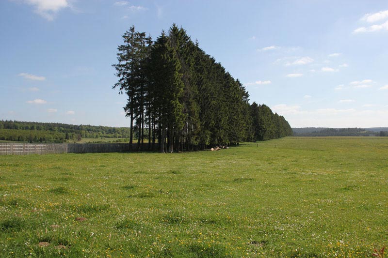 Bei Soubrodt wird eine riesige Weidefläche umfahren, da sich entlang der Bahntrasse ein Brutareal des Braunkehlchens befindet. Diese Weide wird durch einen Waldstreifen geschützt
