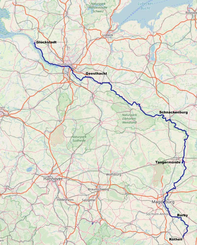 von Glückstadt nach Aken (Köthen)