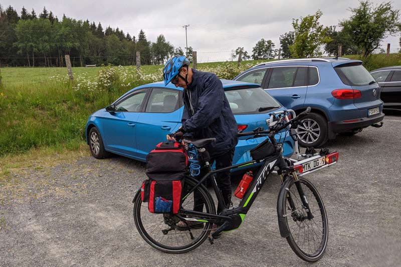 Handgriffen war das Gepäck an der Rädern befestigt und die Tour