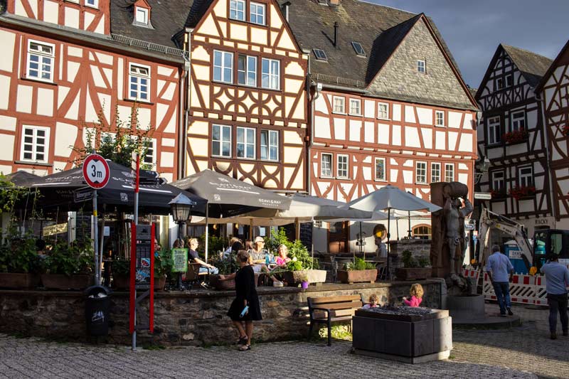 Auch hier waren die Kneipen und Restaurants nur spärlich besetzt wegen Corona. Radtour entlang der Lahn - Juli 2020