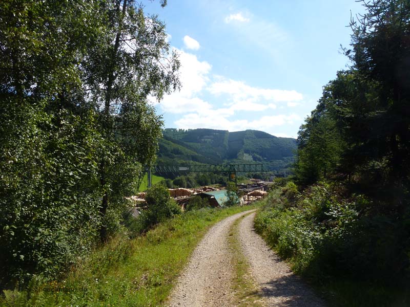 Hier wurde der Radweg aus dem Tal heraus geleitet und nach der Umgehung des Sägewerks