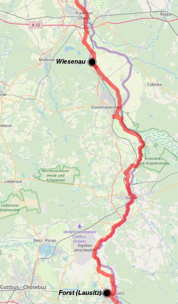 Diese Tagesetappe von Wiesenau nach Forst war 90 km lang.