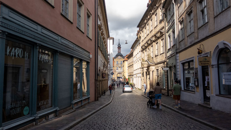 Blick durch die Karolinenstraße zum Bamberger Rathaus
