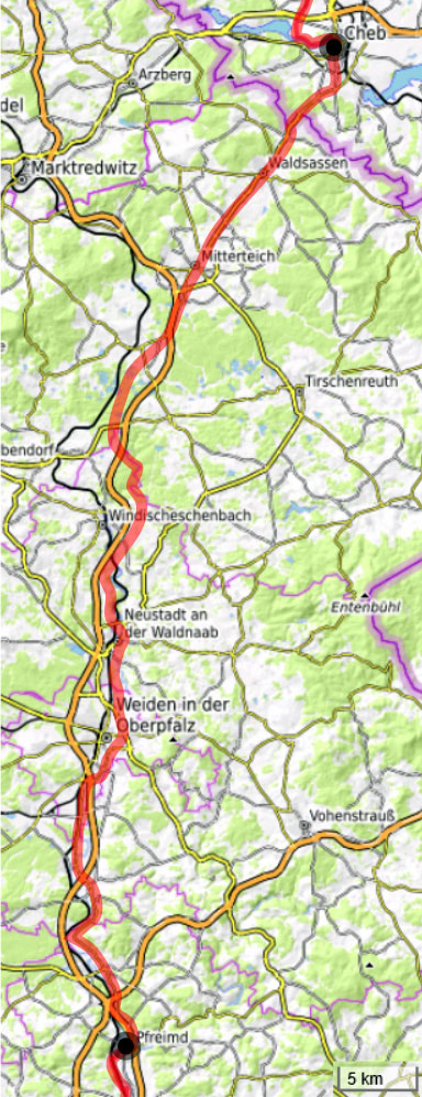 Von Eger radelte ich über Waldsassen zur Waldnaab und dann an dieser entlang nach Pfreimd.