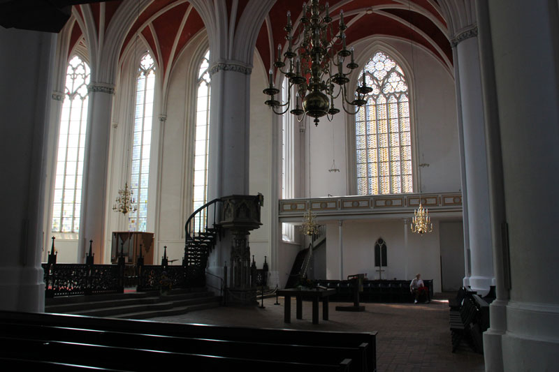 Es ist eine sehr helle Hallenkirche. Seit 1568 ist er eine protestantische Kirche. - Weserradtour - Juli 2014
