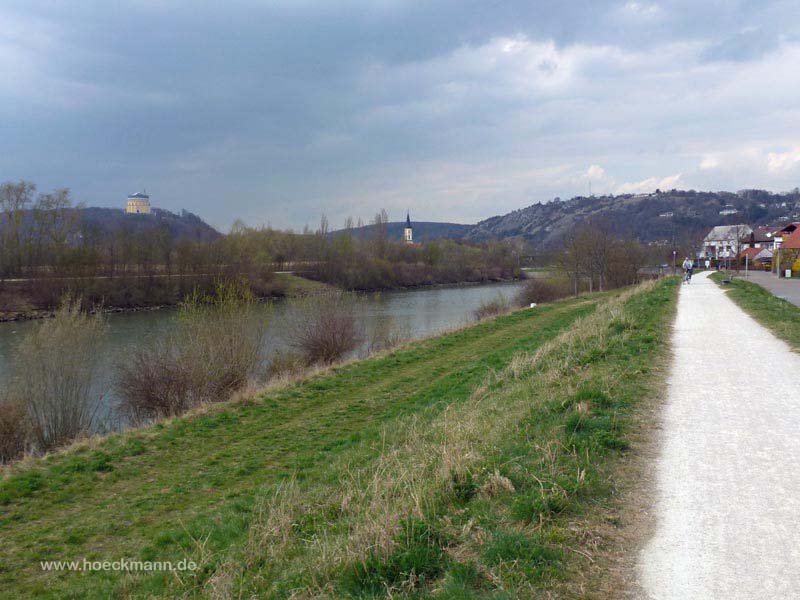 Blick zurück auf Kelheim und die Befreiungshalle und weiter geht es gen Regensburg. - Donauradtour - 2012