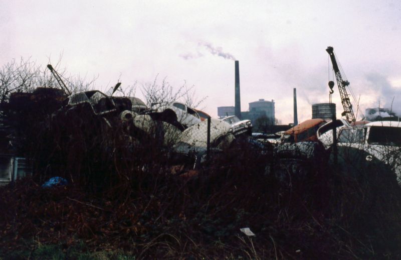 Autowracks vor der Zeche Minister Stein in Dortmund - 1985