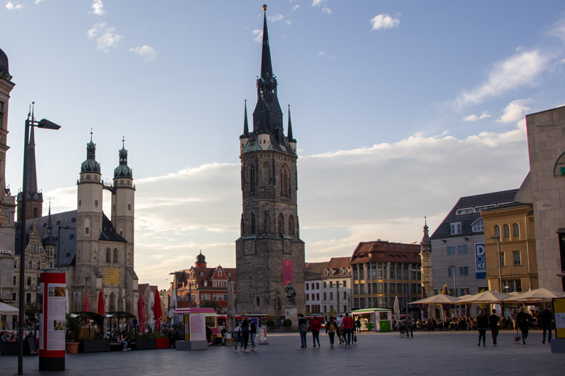 Blick zum Marktplatz von Halle mit dem Roten Turm