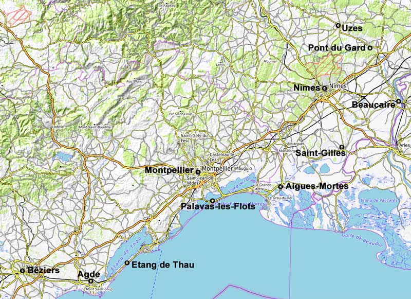Karte der 2025 besuchten Orte im Languedoc