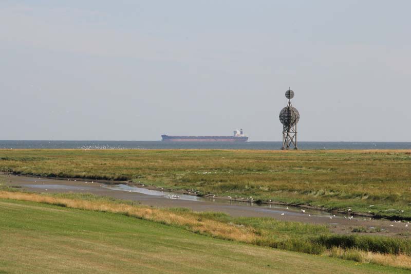 Von der Insel kann man die Schiffe auf dem Weg nach Hamburg bzw. umgekehrt sehen. Insel Neuwerk - Juli 2014