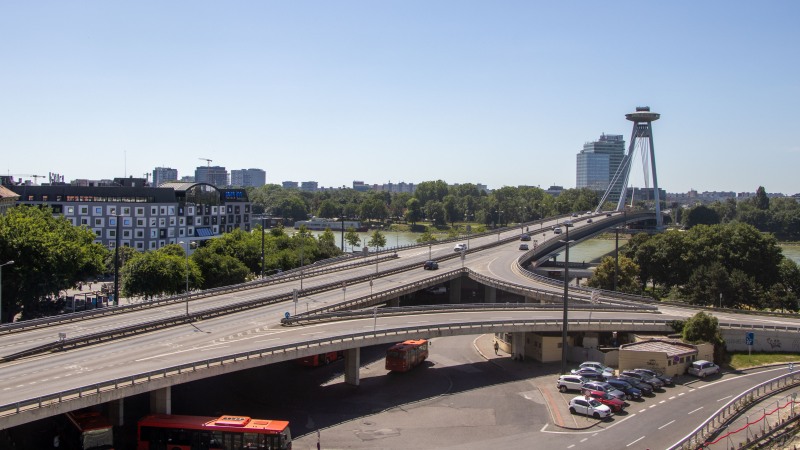 Blick auf die Donaubrücke Most SNP in Bratislava