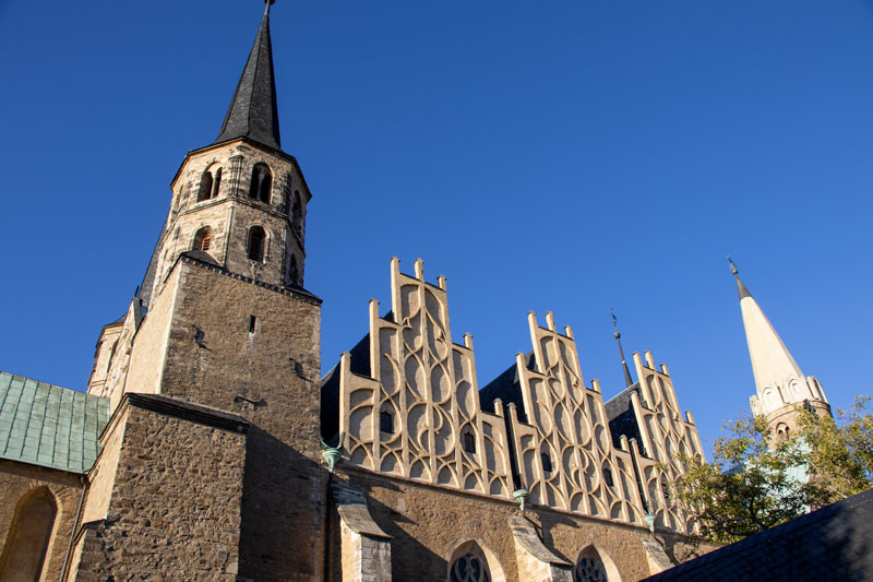 Merseburg hat einen Dom, der berühmt ist wegen des Domschatzes.