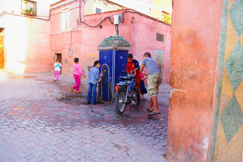 Motorradwäsche an einem Brunnen in Marrakesch - 2008
