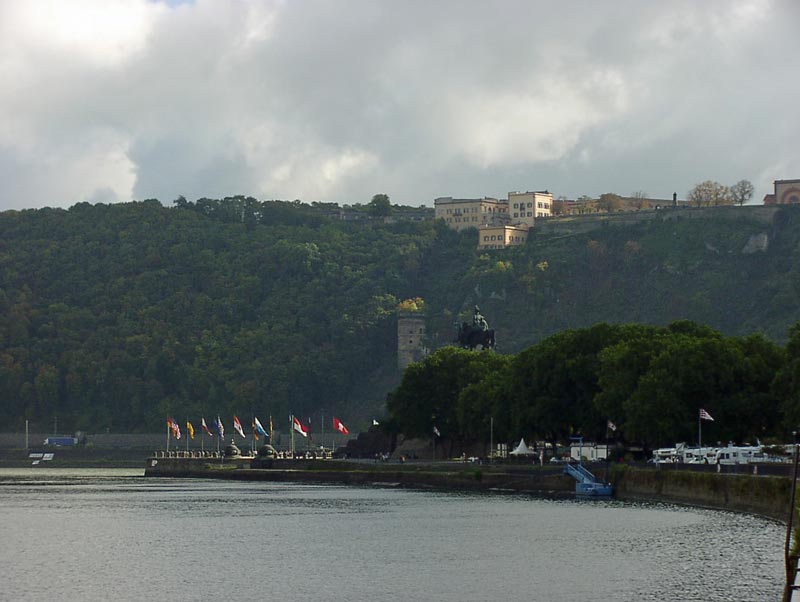Looking from the Mosel towards Deutsches Eck, the Rhine and fortress