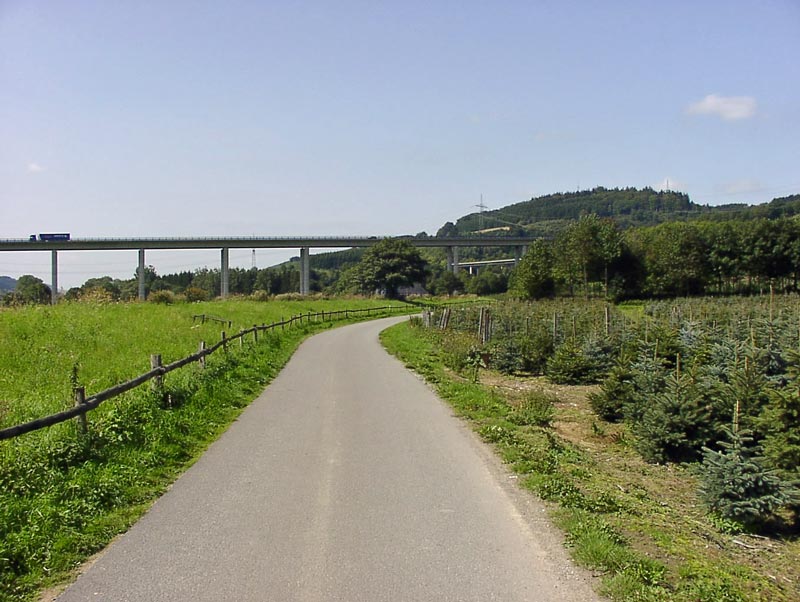Hinter Bestwig kommt ein steiler Anstieg. Über die Brücke führt der Autobahnzubringer von der B7 zur A46.