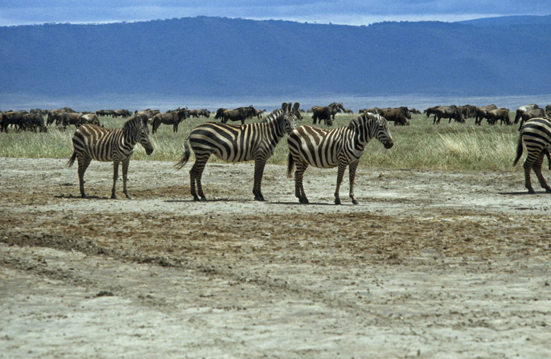 zebras and wildebeests in the Ngorongoro crater
